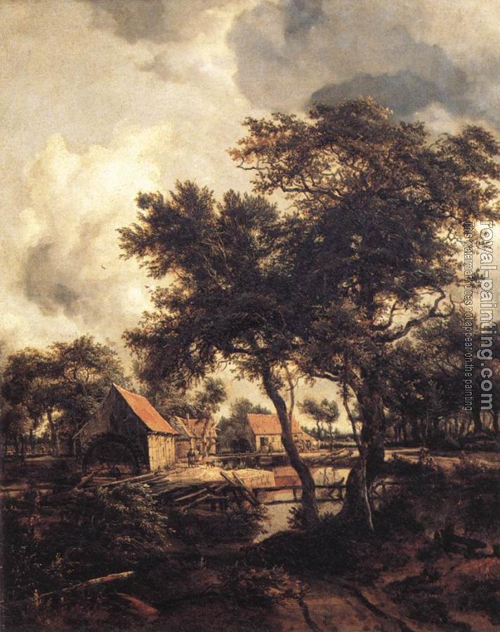 * Hand-painted Meyndert Hobbema Oil Painting Reproduction : The Watermill 2
