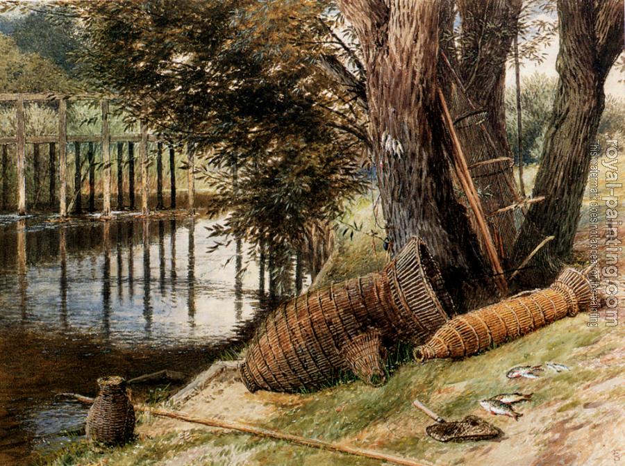 Eel Pots On The banks Of A River by Myles Birket Foster