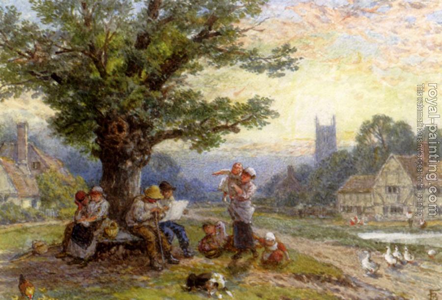 Fugures And Children Beneath A Tree In A Village by Myles Birket Foster