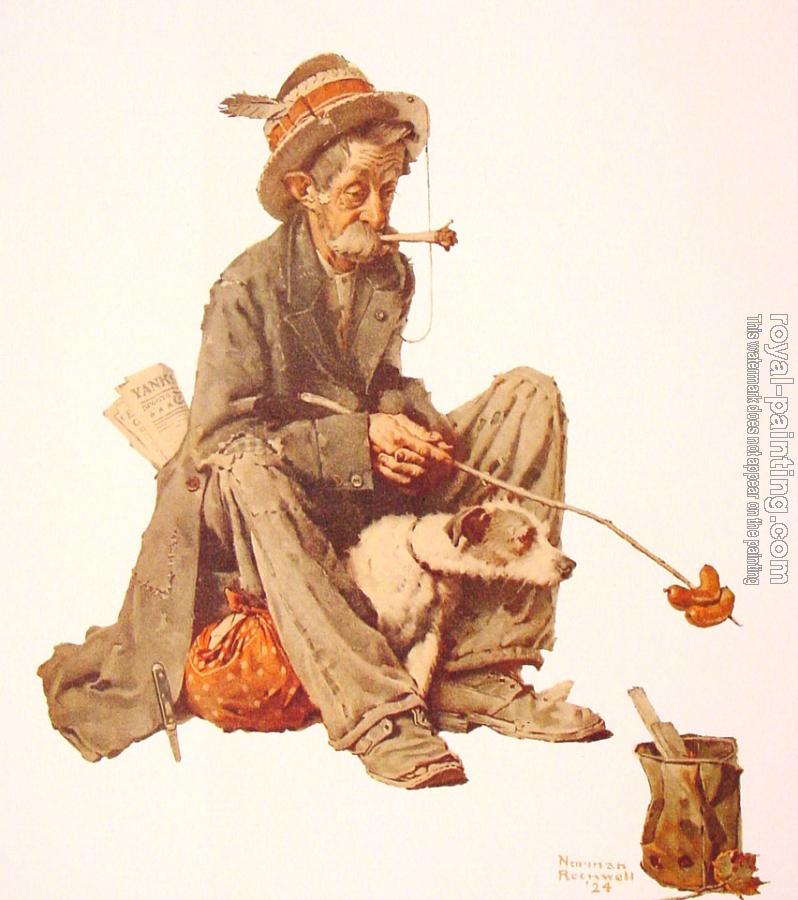 * Hand-painted Norman Rockwell Oil Painting Reproduction : Hobo and Dog