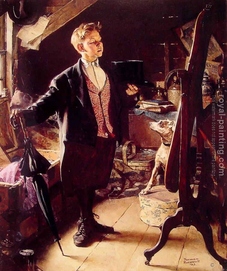 * Hand-painted Norman Rockwell Oil Painting Reproduction : Top Hat and Tails