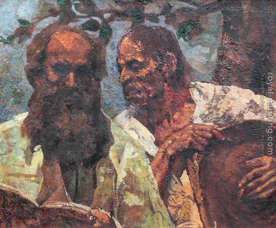 * Hand-painted Octav Bancila Oil Painting Reproduction : Confession of the peasant (composition with self portrait)
