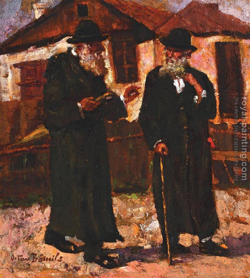 * Hand-painted Octav Bancila Oil Painting Reproduction : Jewish people talking in targu cucu
