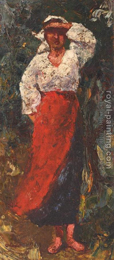 * Hand-painted Octav Bancila Oil Painting Reproduction : Peasant woman