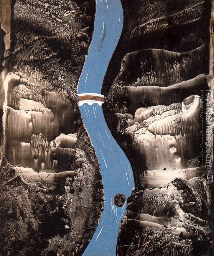 * Hand-painted Oscar Dominguez Oil Painting Reproduction : Decalcomania Con Rio Y Puente