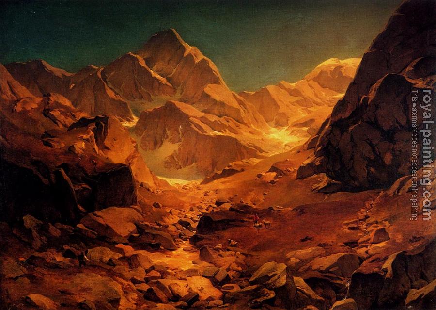* Hand-painted Oswald Achenbach Oil Painting Reproduction : A Mountainous Landscape