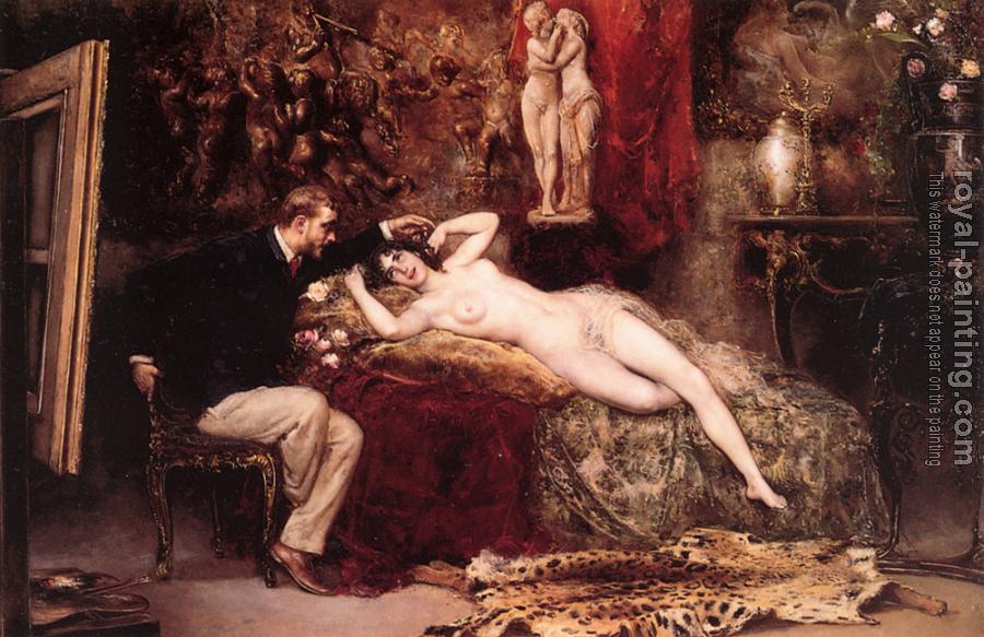 * Hand-painted Pablo Juan Salinas Oil Painting Reproduction : In the Artist's Atelier