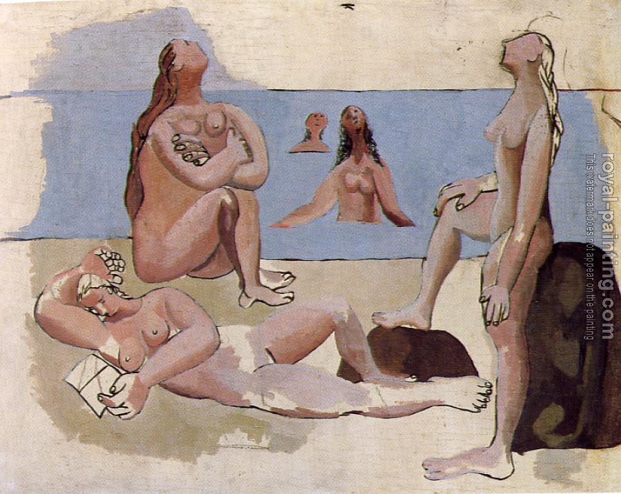 * Hand-painted Pablo Picasso Oil Painting Reproduction : bathers watching an airplane