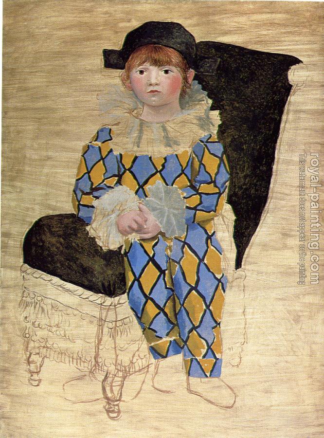 * Hand-painted Pablo Picasso Oil Painting Reproduction : paulo as harlequin