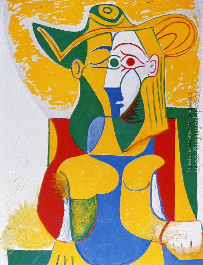 * Hand-painted Pablo Picasso Oil Painting Reproduction : seated woman in a yellow and green hat