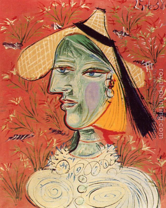 * Hand-painted Pablo Picasso Oil Painting Reproduction : woman in a straw hat against a flowered background
