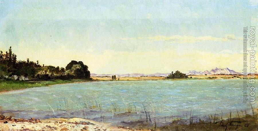 * Hand-painted Paul-Camille Guigou Oil Painting Reproduction : A Lake in Southern France