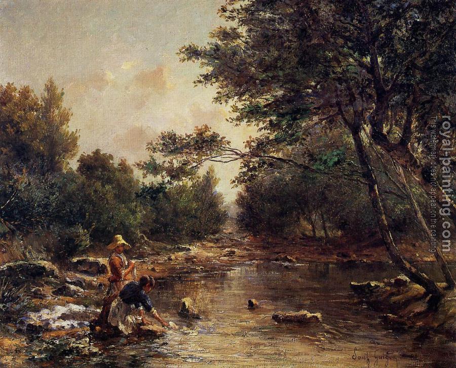 * Hand-painted Paul-Camille Guigou Oil Painting Reproduction : On the Banks of the River