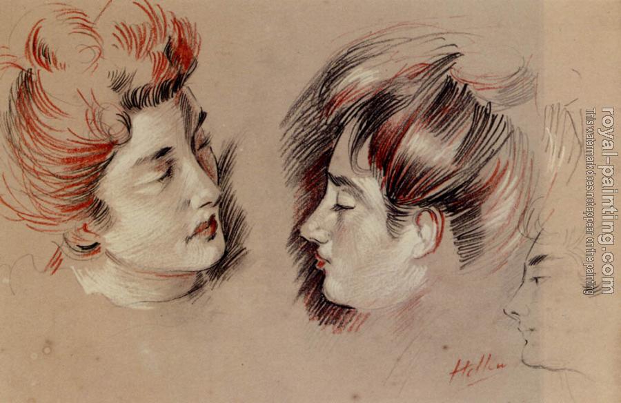 * Hand-painted Paul Cesar Helleu Oil Painting Reproduction : Head Studies