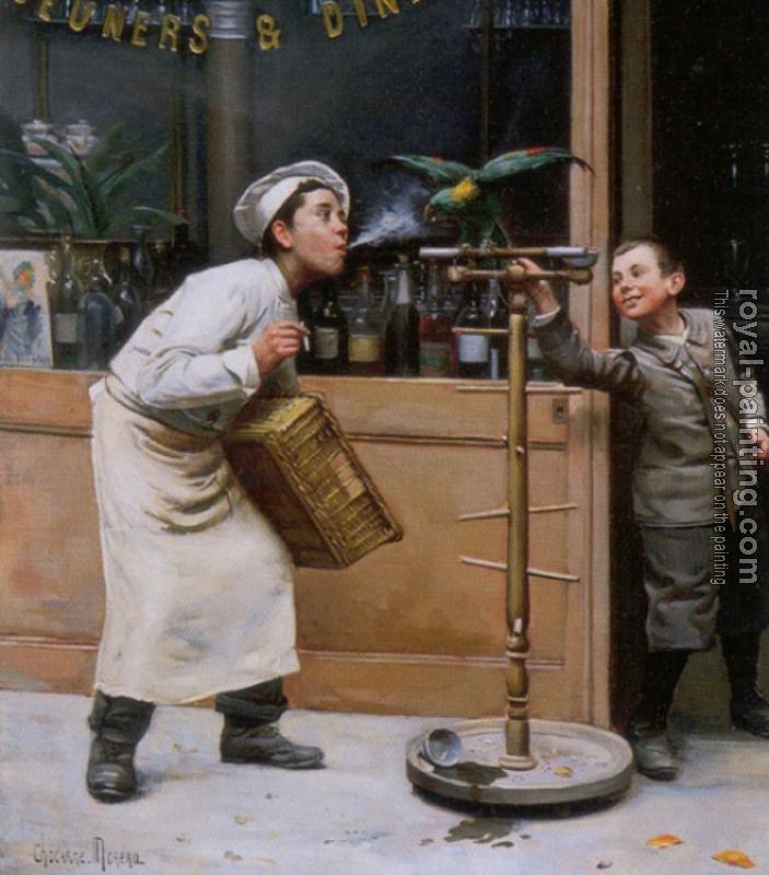 * Hand-painted Paul Charles Chocarne-Moreau Oil Painting Reproduction : Teasing the Parrot