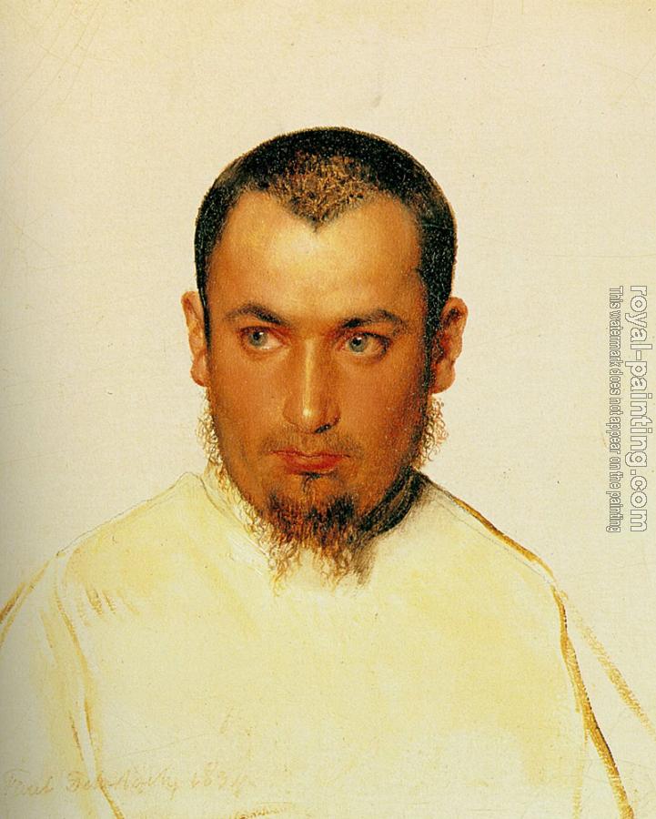 * Hand-painted Paul Delaroche Oil Painting Reproduction : Head of a Camoldine Monk