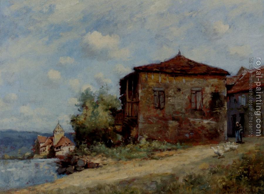 * Hand-painted Paul Desire Trouillebert Oil Painting Reproduction : La Depart De La Garddeuse D Oies