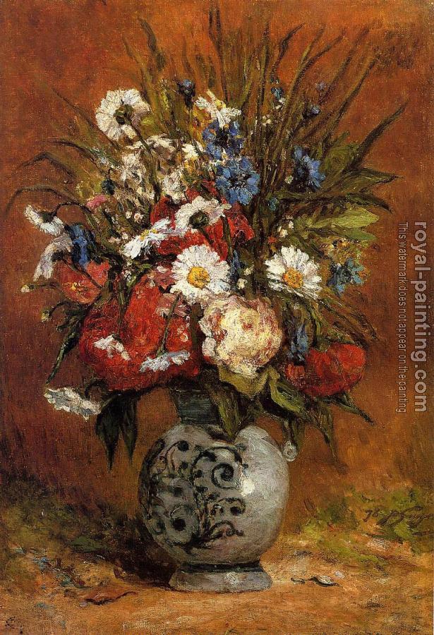 Daisies and Peonies in a Blue Vase by Paul Gauguin