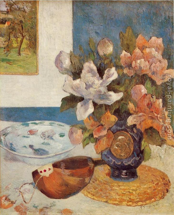 * Hand-painted Paul Gauguin Oil Painting Reproduction : Still Life with Chinese Peonies and Mandolin