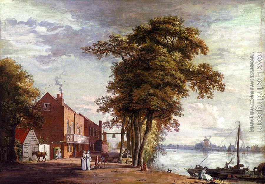 * Hand-painted Paul Sandby Oil Painting Reproduction : The Spread Eagle Tavern Millbank