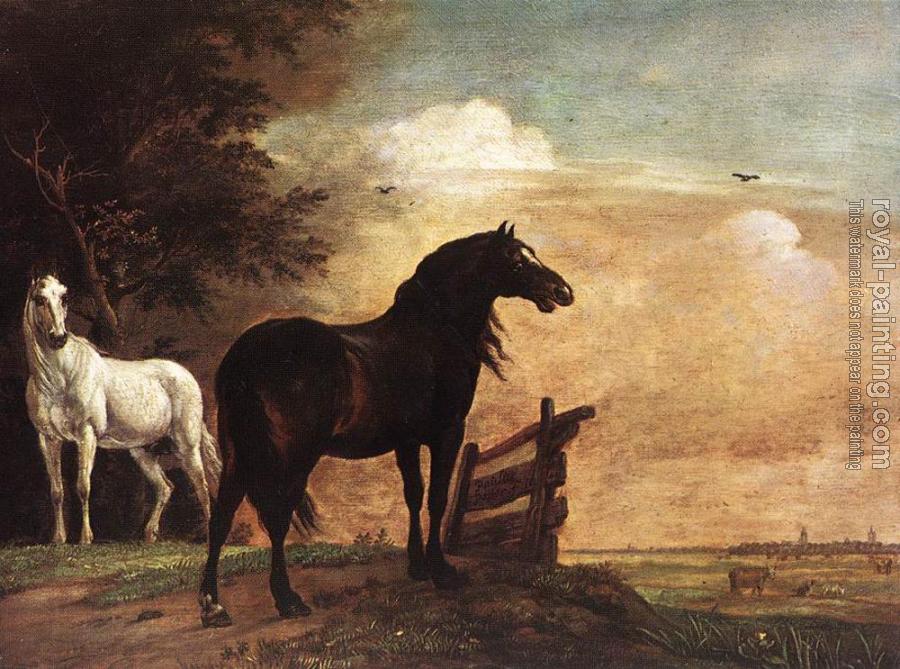 * Hand-painted Paulus Potter Oil Painting Reproduction : Horses In A Field