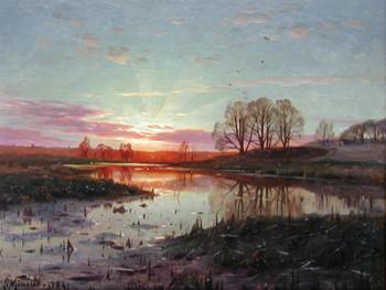 Peder Mork Monsted (Peter Mark Monsted) (1859-12-10 - 1941-06-20) was a Danish realist painter. Monsted was known for his landscape paintings
