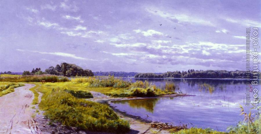 * Hand-painted Peder Mork Monsted Oil Painting Reproduction : River Landscape
