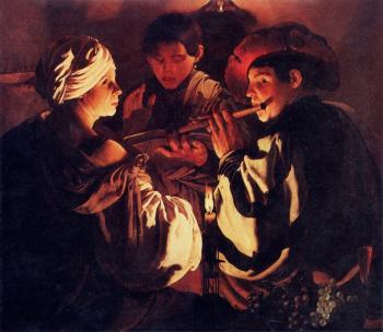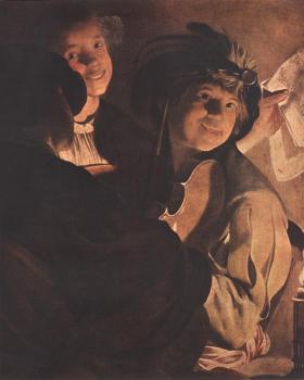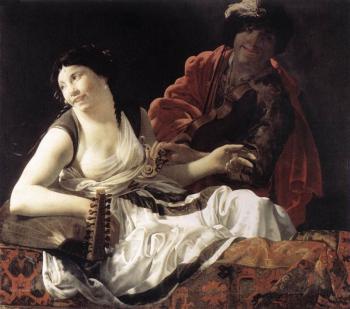 A Luteplayer Carousing With A Young Woman Holding A Roemer