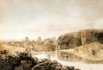 De Wint was the son of an English physician of Dutch extraction who had come to England from New York., he was born in Stone, Staffordshire. He moved to London in 1802, and was apprenticed to John Raphael Smith, the mezzotint engraver and portrait painter. He bought his freedom from Smith in 1806, on condition that he supply eighteen oil paintings over the following two years. In 1806 he visited Lincoln for the first time, with the painter of historical subjects William Hilton, R.A., whose sister Harriet he married in 1810. De Wint and Hilton lived together in Broad Street, Golden Square, where John Varley also lived. Varley gave De Wint further lessons and introduced him to Dr Monro, who ran an informal academy for young artists. De Wint first exhibited at the Royal Academy in 1807, and the following year at the Gallery of Associated Artists in Watercolours. In 1809 entered the Royal Academy schools. He was elected an Associate of the Old Watercolour Society in 1810 and was made a full member the following year. By that time, as an established drawing-master, he was spending his summers teaching well-to-do provincial families. In 1812 he became a member of the Society of Painters in Watercolours, where he exhibited largely for many years, as well as at the Academy.