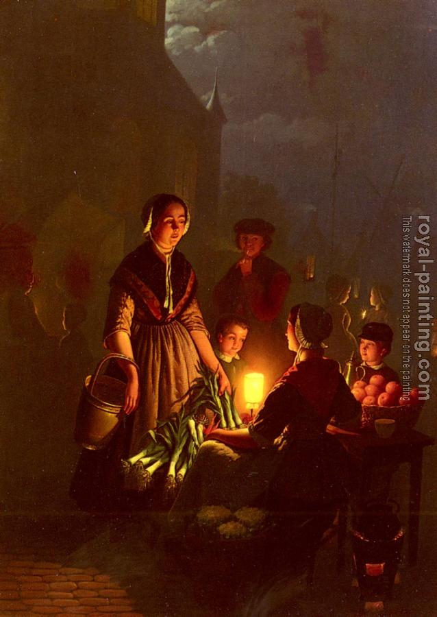 * Hand-painted Petrus Van Schendel Oil Painting Reproduction : The Evening Market