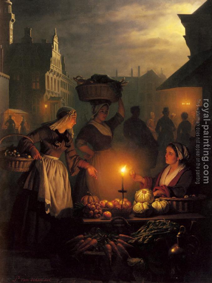 * Hand-painted Petrus Van Schendel Oil Painting Reproduction : The Night Market