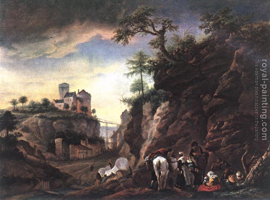 Rocky Landscape with resting Travellers by Philips Wouwerman