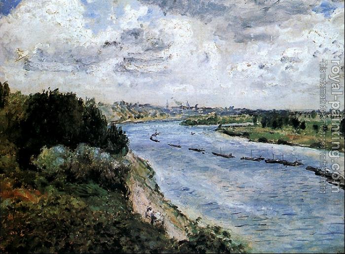 * Hand-painted Pierre Auguste Renoir Oil Painting Reproduction : Barges on the Seine