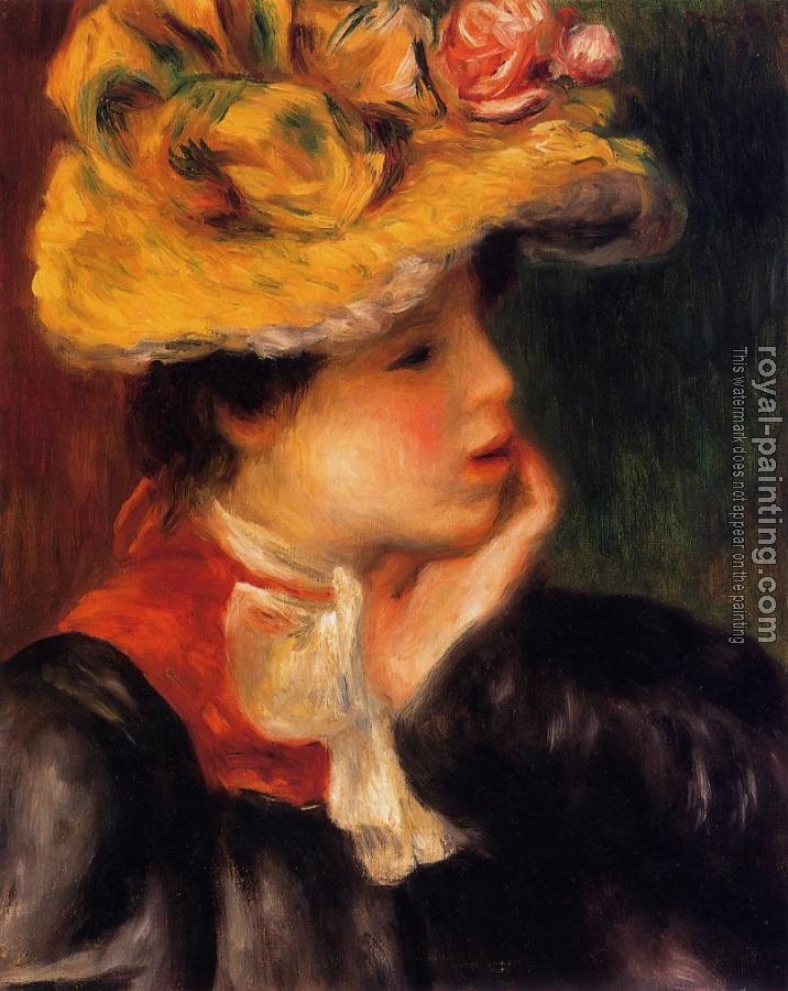 Head of a Young Woman, Yellow Hat by Pierre Auguste Renoir
