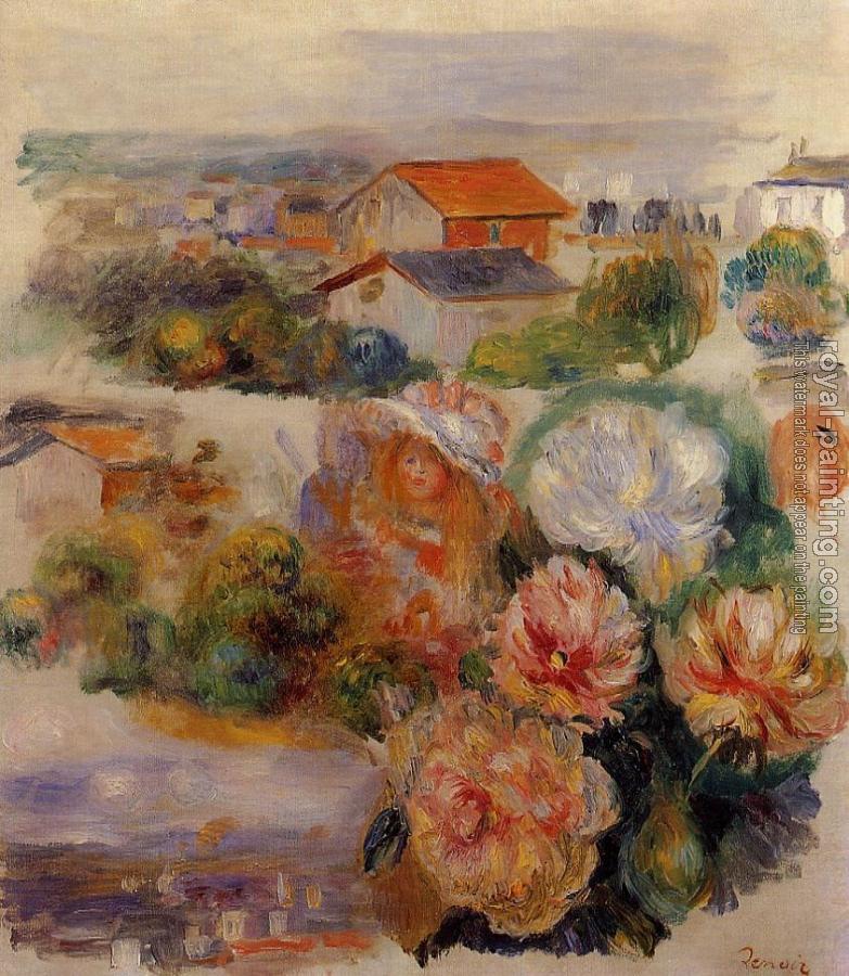 Landscape, Flowers and Little Girl by Pierre Auguste Renoir