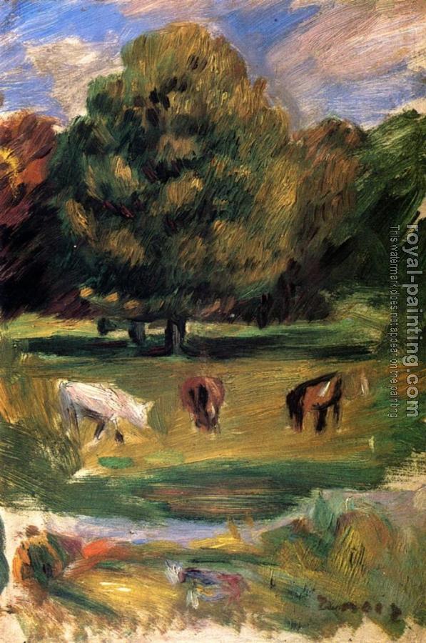 * Hand-painted Pierre Auguste Renoir Oil Painting Reproduction : Landscape with Horses