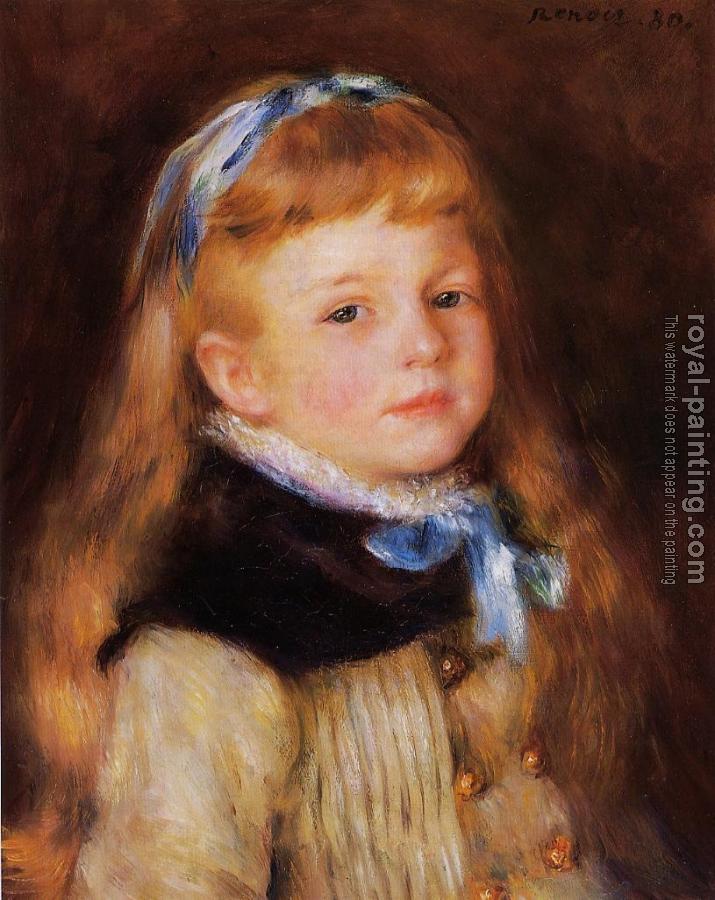 * Hand-painted Pierre Auguste Renoir Oil Painting Reproduction : Mademoiselle Grimprel in a Blue Ribbon