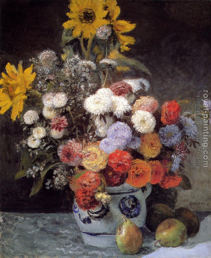 * Hand-painted Pierre Auguste Renoir Oil Painting Reproduction : Mixed Flowers In An Earthware Pot