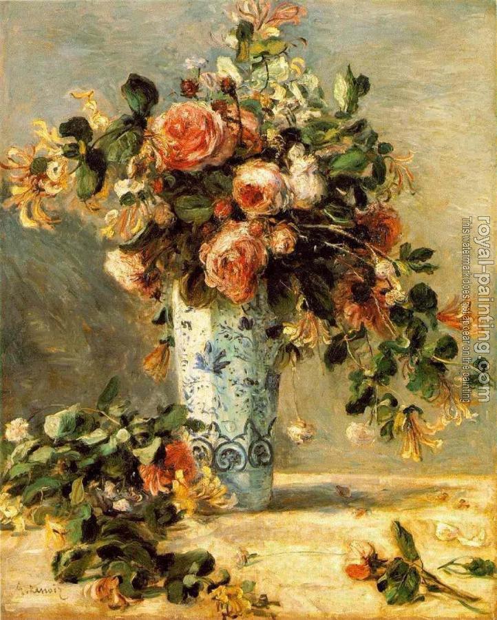 Roses and Jasmine in a Delft Vase by Pierre Auguste Renoir