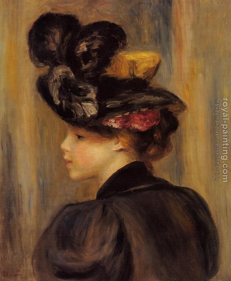 Young Woman Wearing a Black Hat by Pierre Auguste Renoir