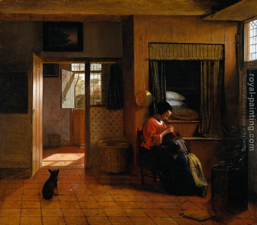 * Hand-painted Pieter De Hooch Oil Painting Reproduction : Interior with a Mother delousing her child's hair