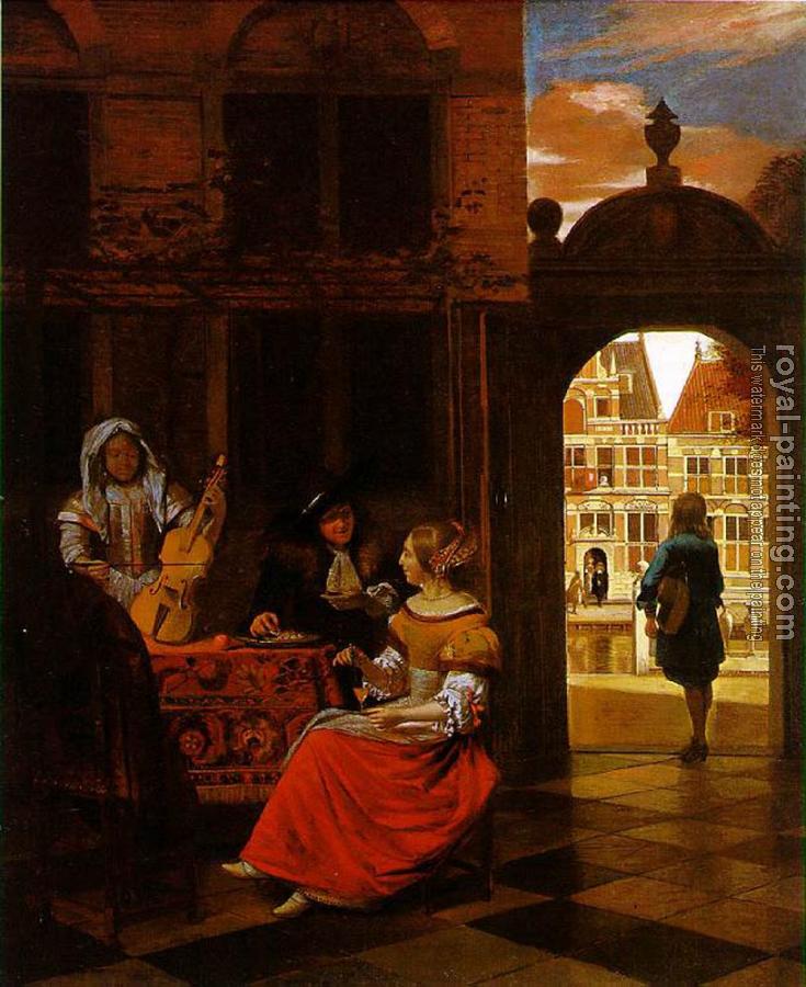 * Hand-painted Pieter De Hooch Oil Painting Reproduction : Musical Party in a Courtyard