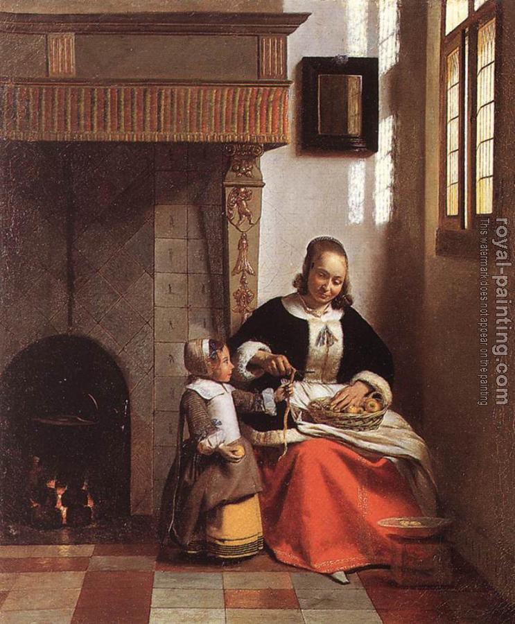 * Hand-painted Pieter De Hooch Oil Painting Reproduction : Woman Peeling Apples