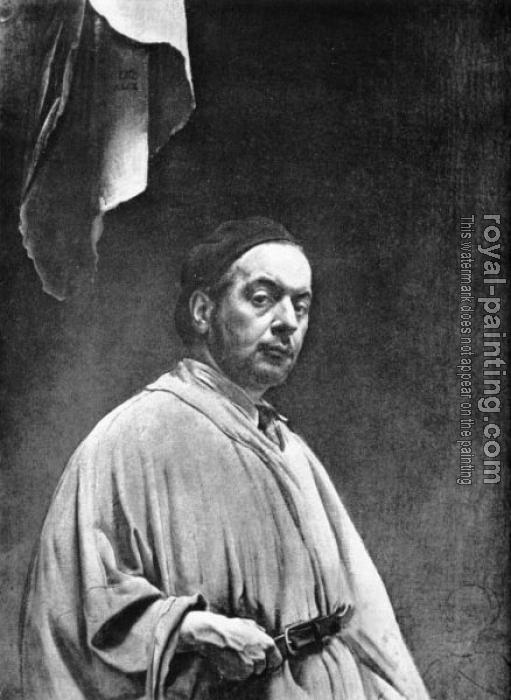 * Hand-painted Pietro Annigoni Oil Painting Reproduction : Autoritratto con tenda sopra la testa