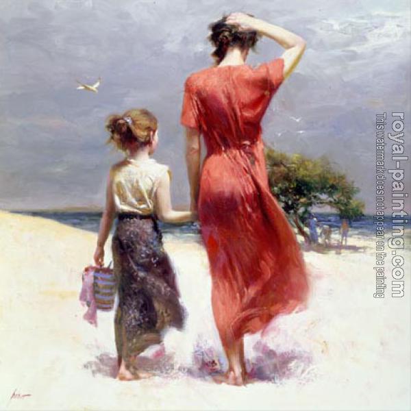 * Hand-painted Pino Daeni Oil Painting Reproduction : Afternoon Stroll