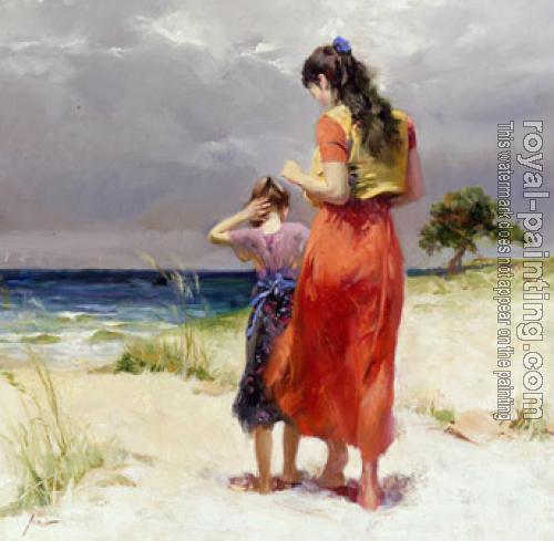 * Hand-painted Pino Daeni Oil Painting Reproduction : BEACH WALK