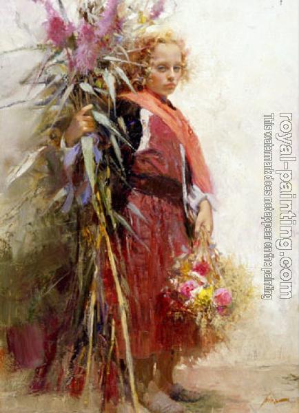* Hand-painted Pino Daeni Oil Painting Reproduction : Flower Child