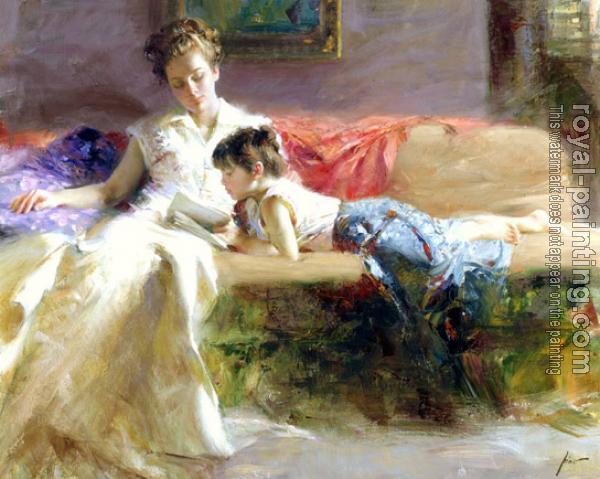 * Hand-painted Pino Daeni Oil Painting Reproduction : Late Night Reading