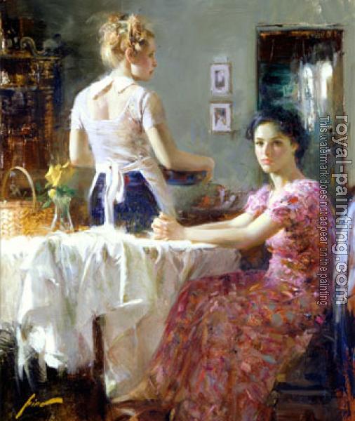 * Hand-painted Pino Daeni Oil Painting Reproduction : SHARING MOMENTS