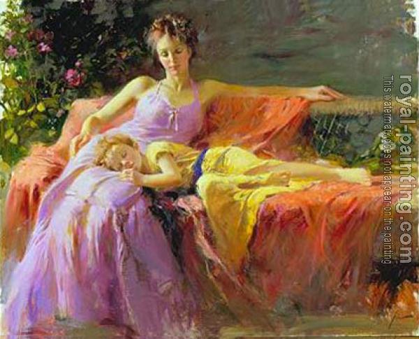 * Hand-painted Pino Daeni Oil Painting Reproduction : Warmth of Love